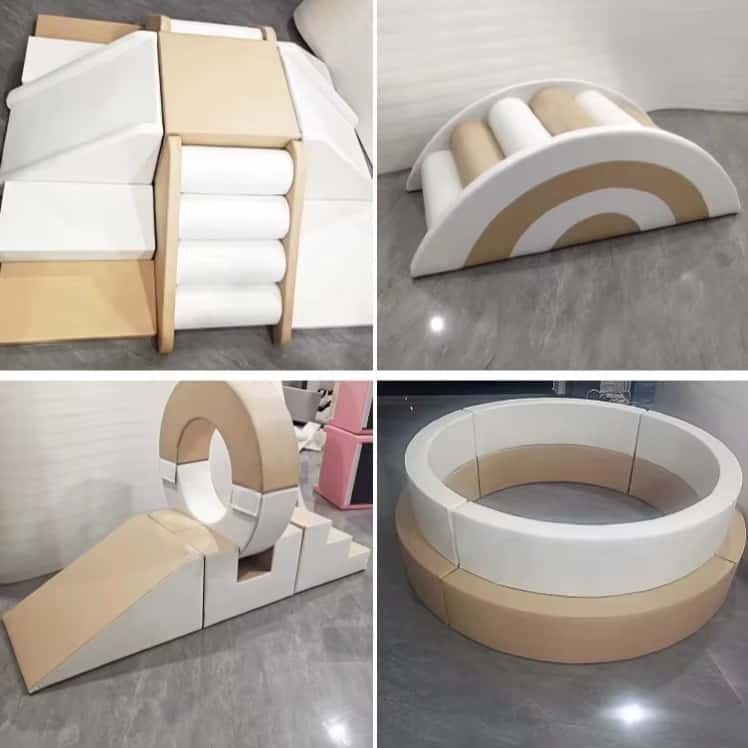 صُنعت معدات اللعب الداخلية الناعمة هذه من هيكل لوح متعدد الطبقات، وحشوة قطنية لؤلؤية، وسطح من جلد البولي يوريثان.