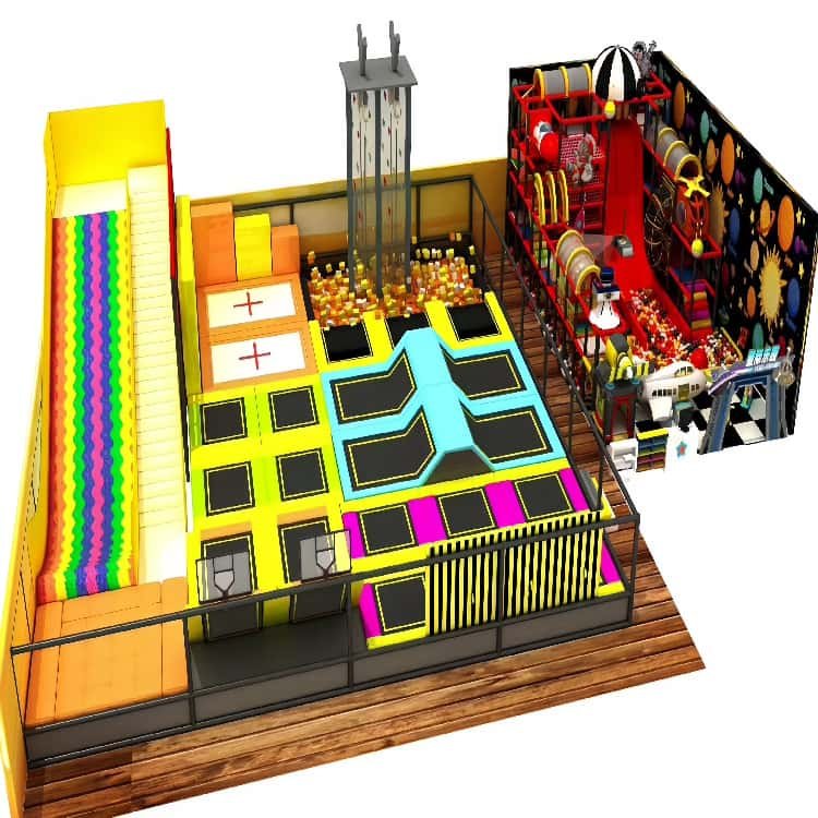Der Werbespot Indoor-Trampolin Park mit Ninja Warrior-Parcours und Soft Play für Kinder und Erwachsene ist eine multifunktionale Indoor-Unterhaltungslösung, die für Familienunterhaltungszentren, Einkaufszentren, Vergnügungsparks und Indoor-Spielplatzbetriebe entwickelt wurde. Durch die Kombination von Hochleistungstrampolinzonen, Ninja Warrior-Hindernisparcours und Soft Play-Bereichen schafft dieses System eine aufregende, sichere und integrative Spielumgebung, die sowohl für Kinder als auch für Erwachsene geeignet ist. Dieser integrierte Indoor-Trampolinpark fördert das aktive Spiel, die Fitness, die Koordination und die soziale Interaktion, was ihn zu einer idealen Attraktion für den ganzjährigen Indoor-Betrieb macht.