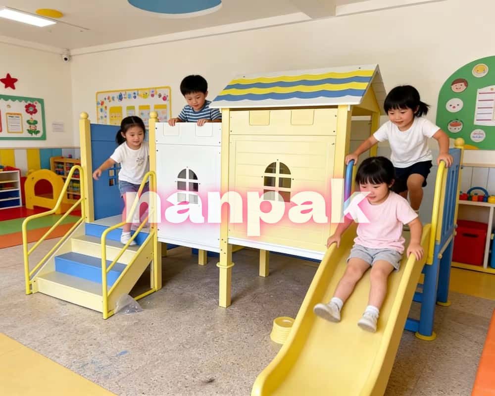 Diseñado como una casa de madera para niños y como un gimnasio de actividades, fomenta la narración creativa, el desarrollo físico y la interacción social en una unidad con un bonito diseño.Juego imaginativo sin límites