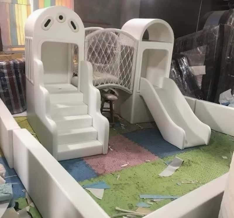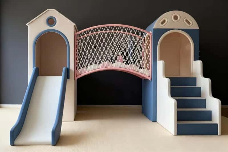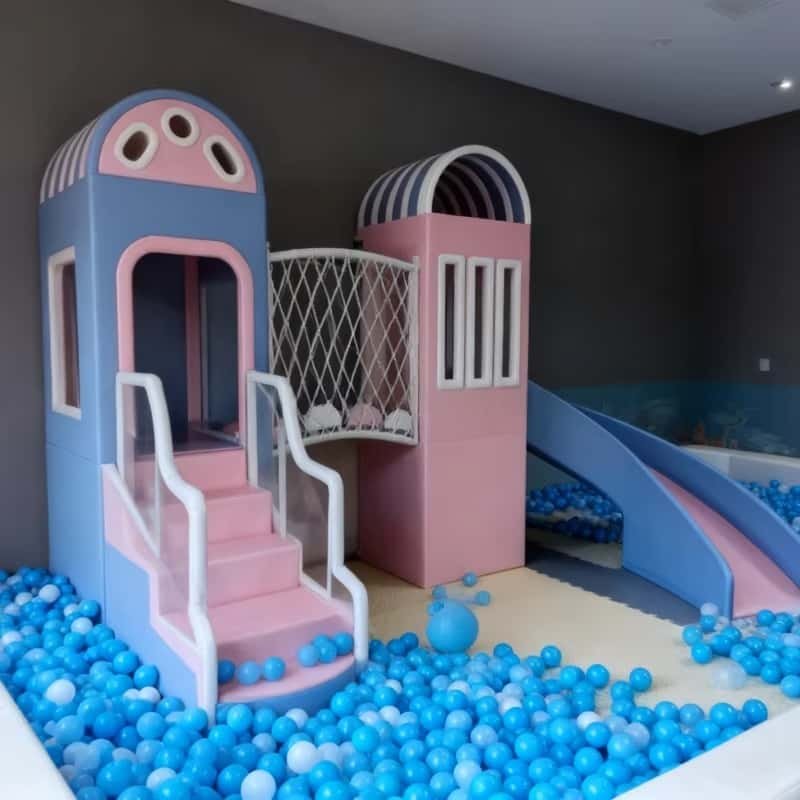 - • Potentiel de jeu ouvert : Le design neutre du château peut devenir un palais de conte de fées, un fort de montagne enneigée, un château de nuages ou une retraite au bord de la mer. La fosse à balles peut se transformer en mer magique, en piscine au trésor ou en champ de cratères.