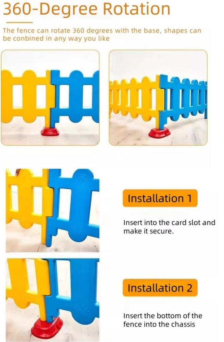 - La flessibilità è fondamentale. È possibile collegare più pannelli per formare recinti più grandi. Personalizza la forma in base alle esigenze del tuo parco giochi. Questo rende la nostra recinzione morbida versatile per case, asili e parchi giochi al coperto.