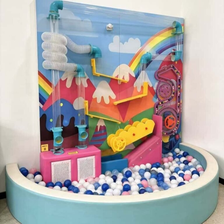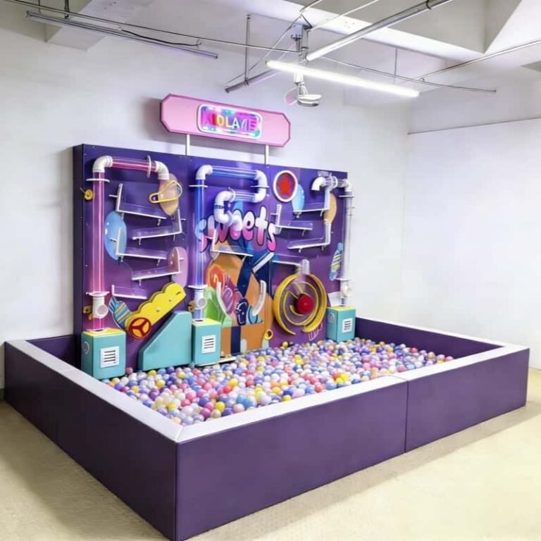 ピンクと白の屋内遊び場感覚ボール壁管パネル ゲーム教育活動ボード