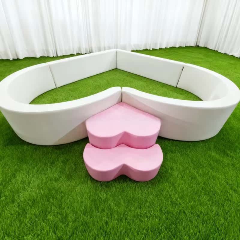 This Heart Shape white foam ball pit Soft Play ball pool for kids Playroom Party Event features a freestanding heart-shaped structure with high, soft walls. The elegant white color fits perfectly with popular party themes, minimalist playrooms, and event setups. It blends beautifully into birthdays, baby showers, and indoor or outdoor celebrations.