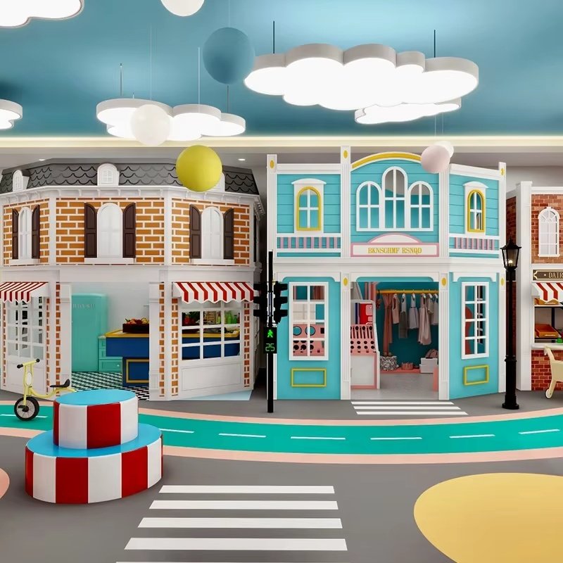 Customized Commercial Pretend Play City Kids Role Play House Indoor Playground Equipments