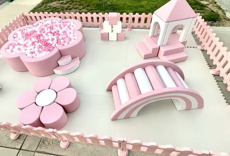 Soft pink tones are always in high demand for little girls’ parties, making this pink soft play ball pit a reliable choice for repeat rentals. Whether styled as a princess corner, a pastel play zone, or paired with balloons and soft play shapes, this pink ball pool blends effortlessly into luxury party setups while keeping young children entertained and secure.
