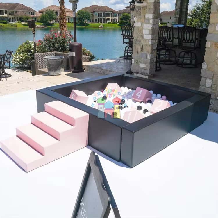 Piscina de bolas macias preta e branca para áreas de recreação internas e externas