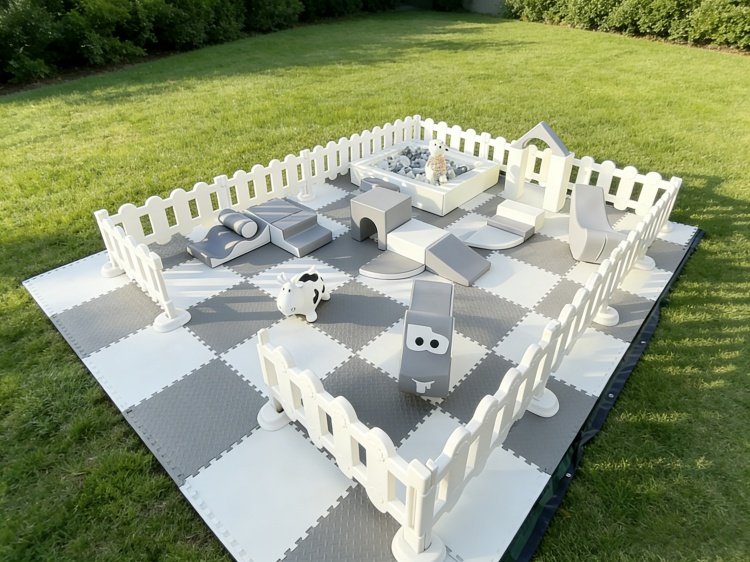 Concebido para utilização flexível em parques infantis interiores, quintais e espaços para eventos ao ar livre. - Design seguro e suave